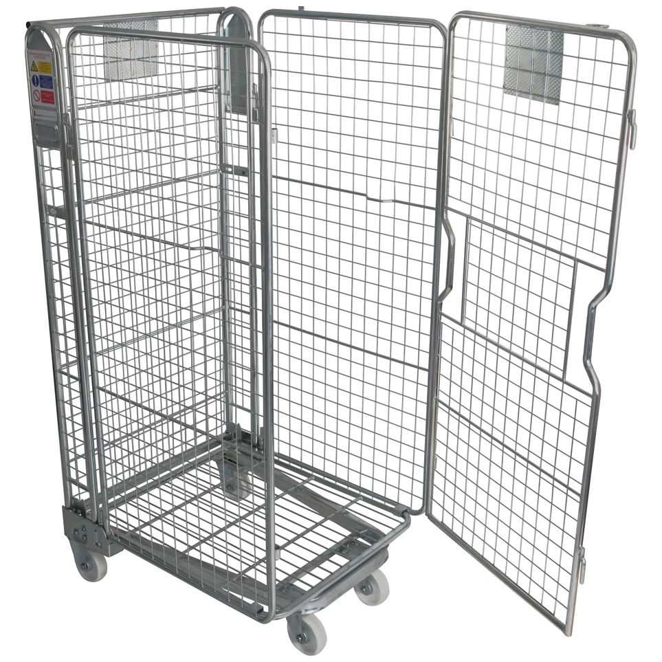 4 Sided Mesh A-Base Nestable Roll Pallets – Zinc Plated