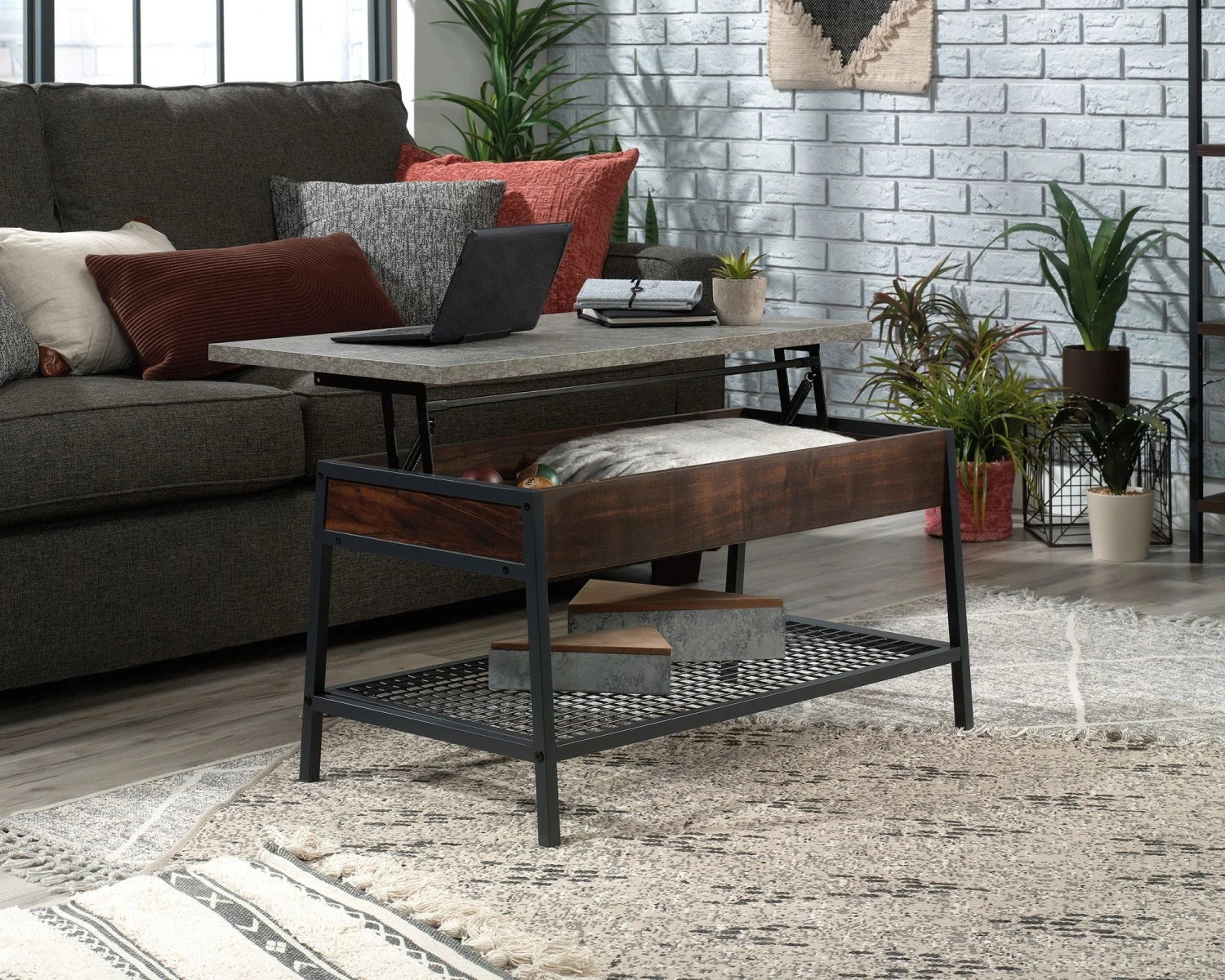 - Coverts from striking coffee table to a handy desk.