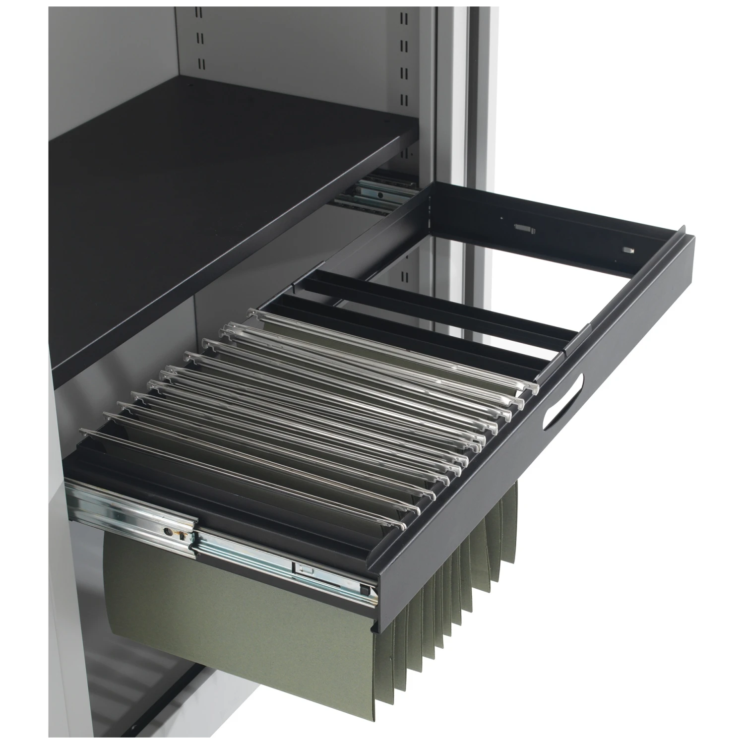 - Roll out filing frame to fit Commerce II Steel Tambours only.