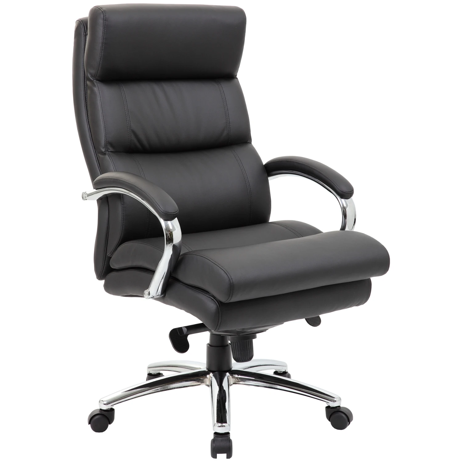 - Bonded leather executive chair with comfortable panel stitched cushion design.