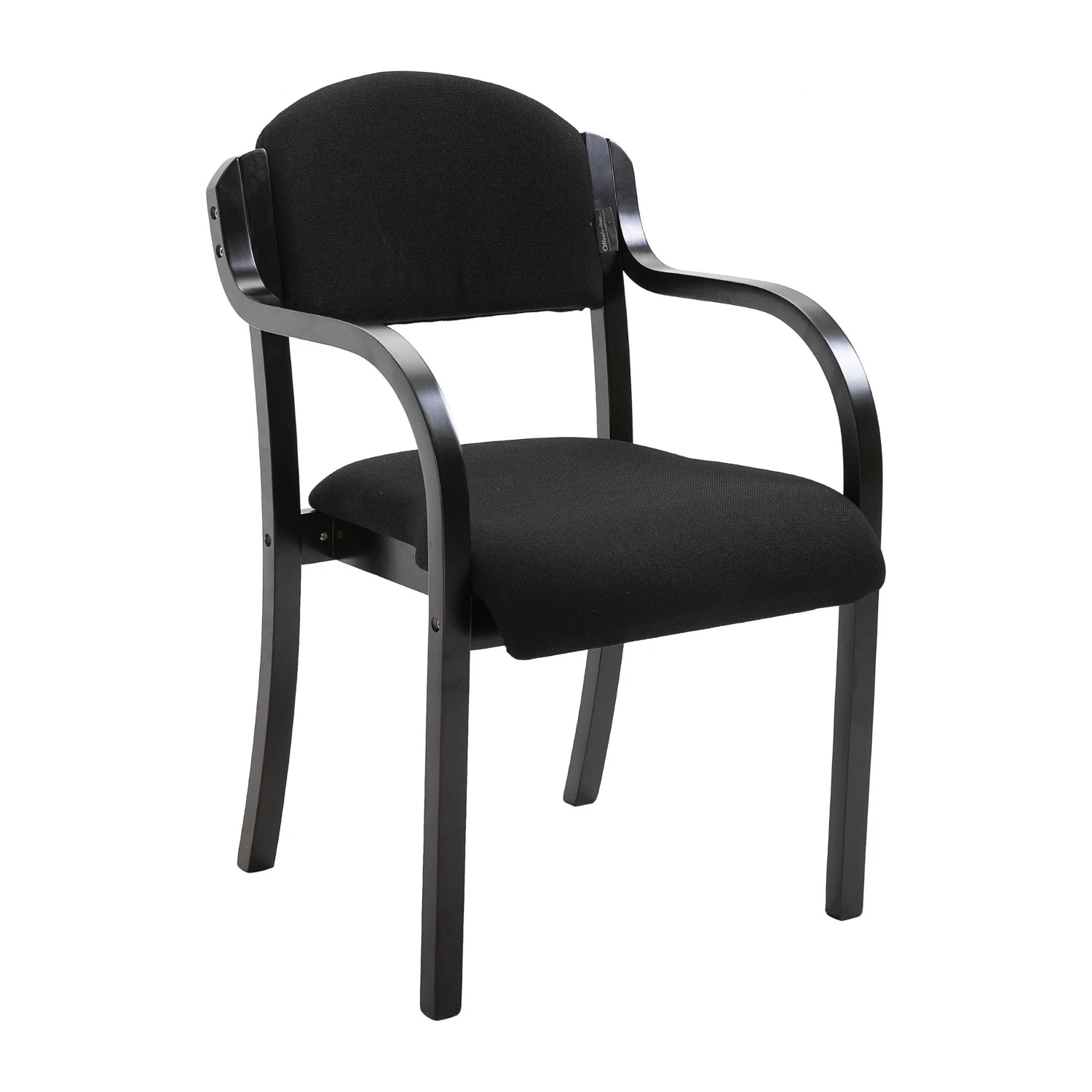 - Modern and practical stackable visitor armchairs with contemporary black wooden frames.