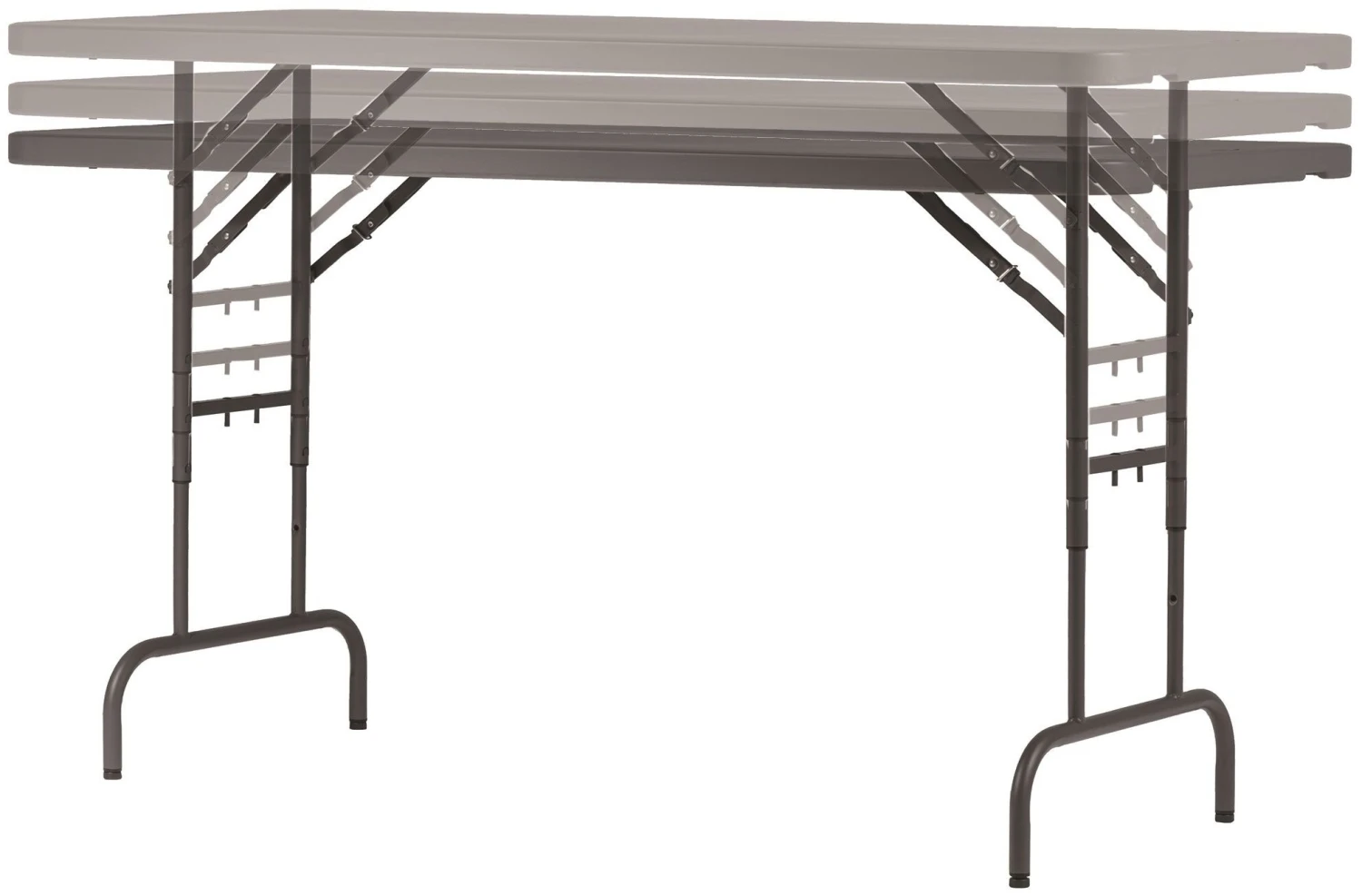 - Lightweight polyethylene folding leg tables.