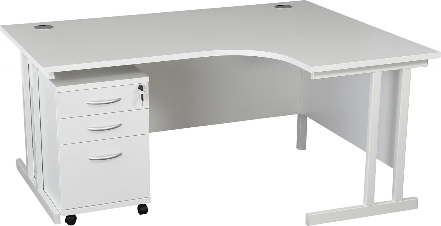 - Deluxe double upright cantilever design ergonomic office desks with a handy tall under desk pedestal.