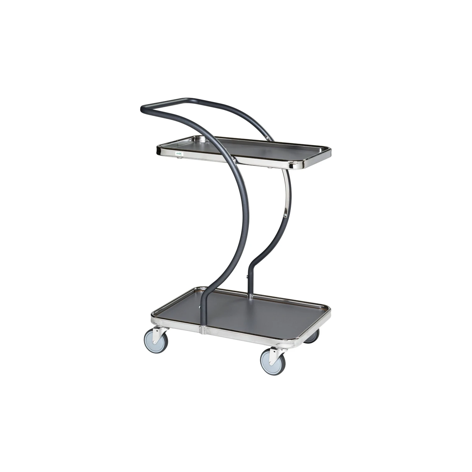 C-line shaped tray trolley has been designed with style and elegance in mind with it’s curved frame and grey trays.