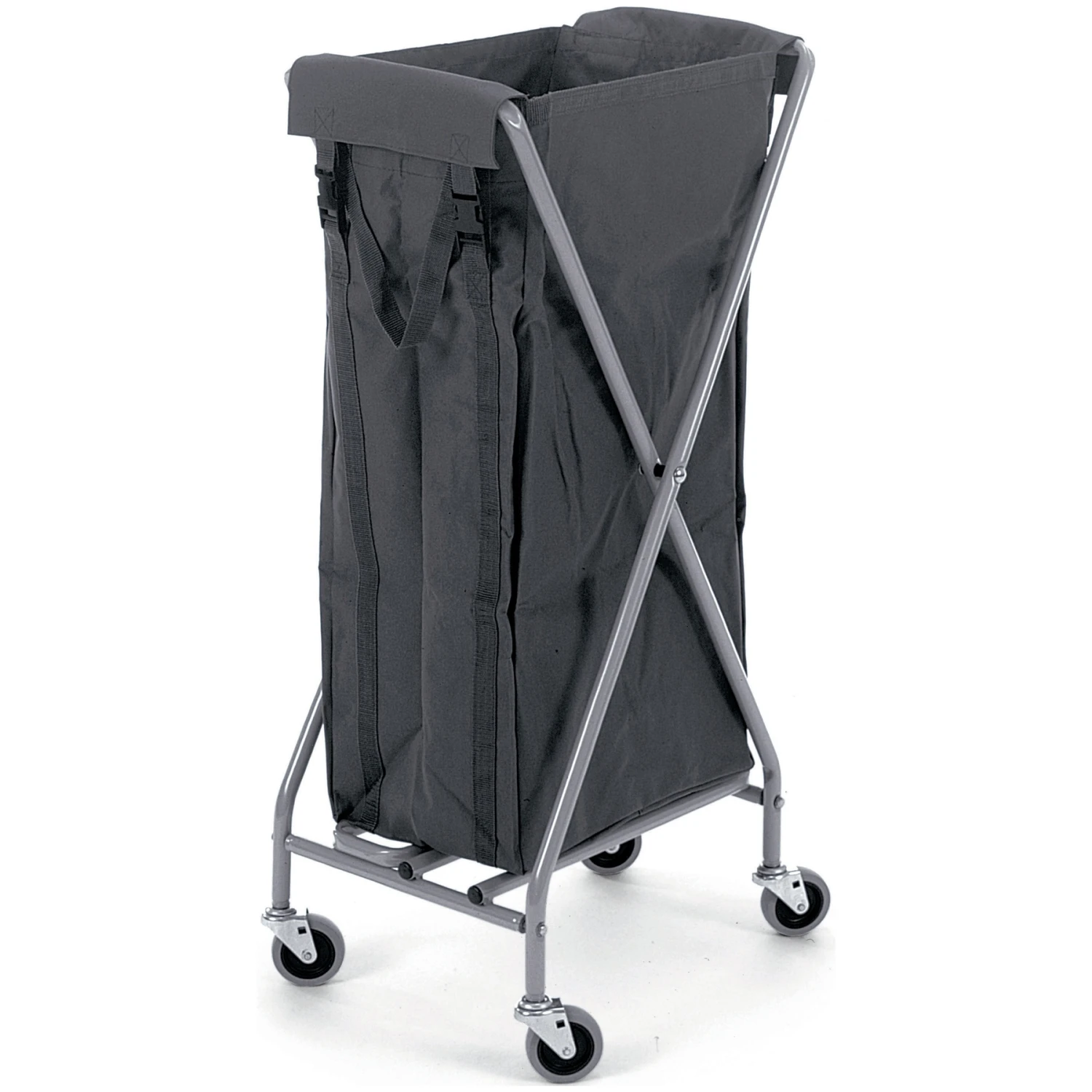 Compact laundry trolley on 4 swivel castors for easy manoeuvrability – ideal for use in hospitality settings.