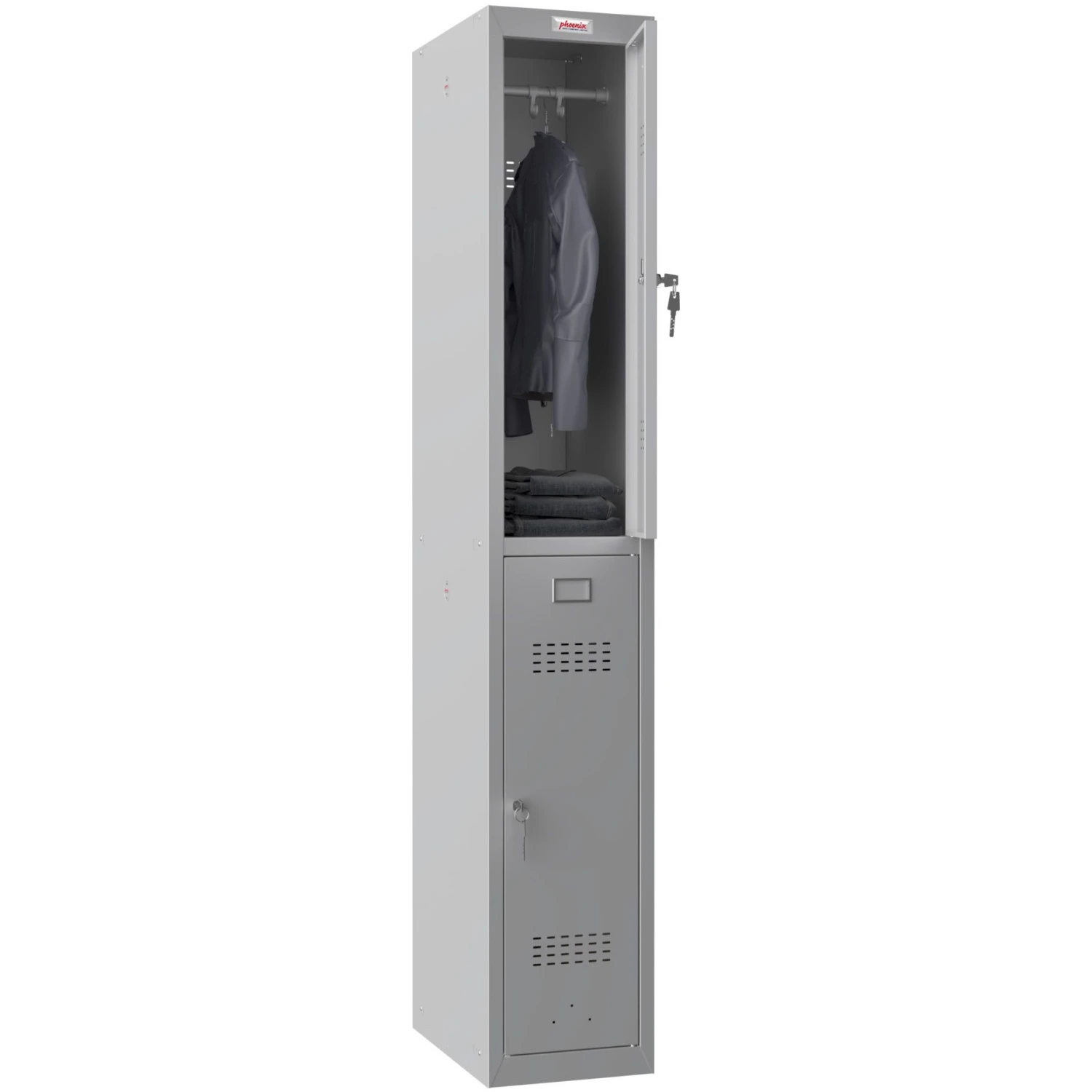 - Supplied in a single column with a two separate lockable doors – ideal for secure and separate storage of items.