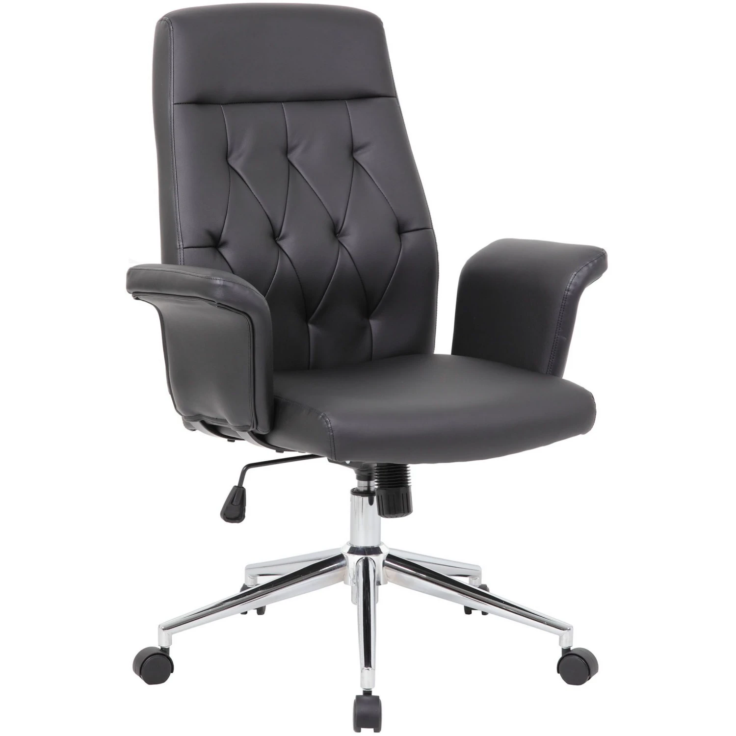 - Features glossy chrome gas lift and spider base.