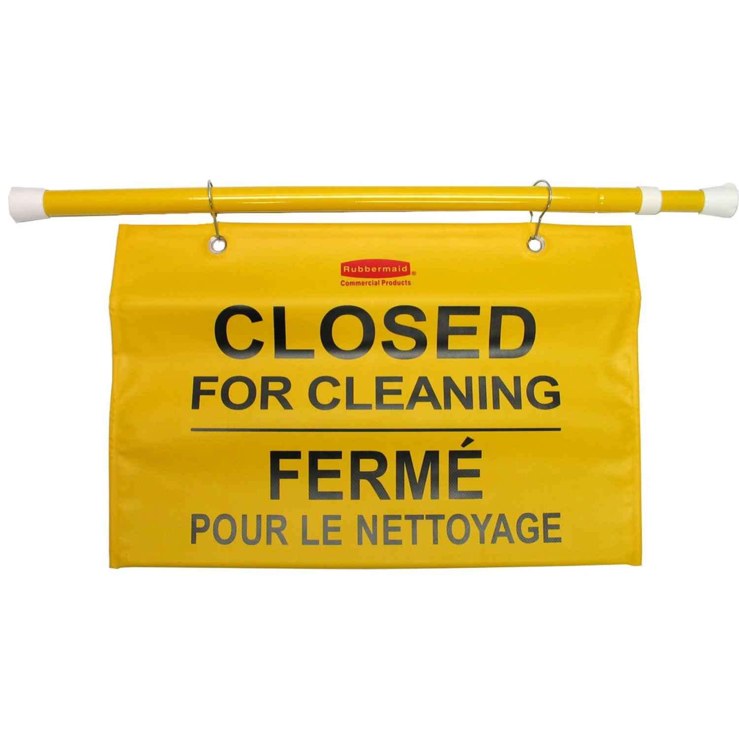 Durable and easy to use warning sign that fits in most doors to close off when cleaning.