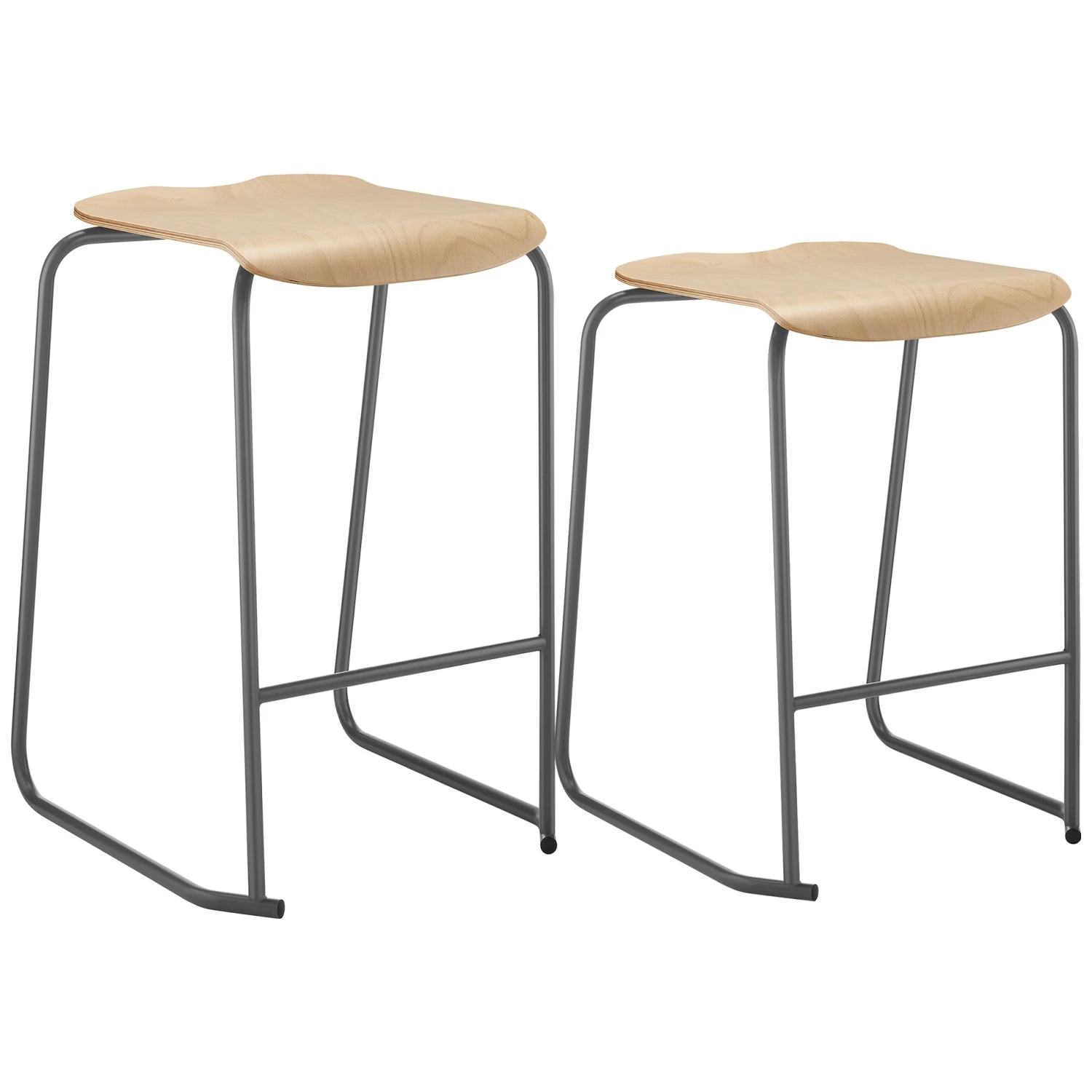 - Ergonomic polypropylene classroom stool with wooden seat.